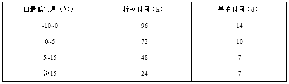 3、灌漿料達到拆膜時間后,可進行設(shè)備安裝,具體時間參見“拆膜和養(yǎng)護時間及環(huán)境溫度的關(guān)系表”: